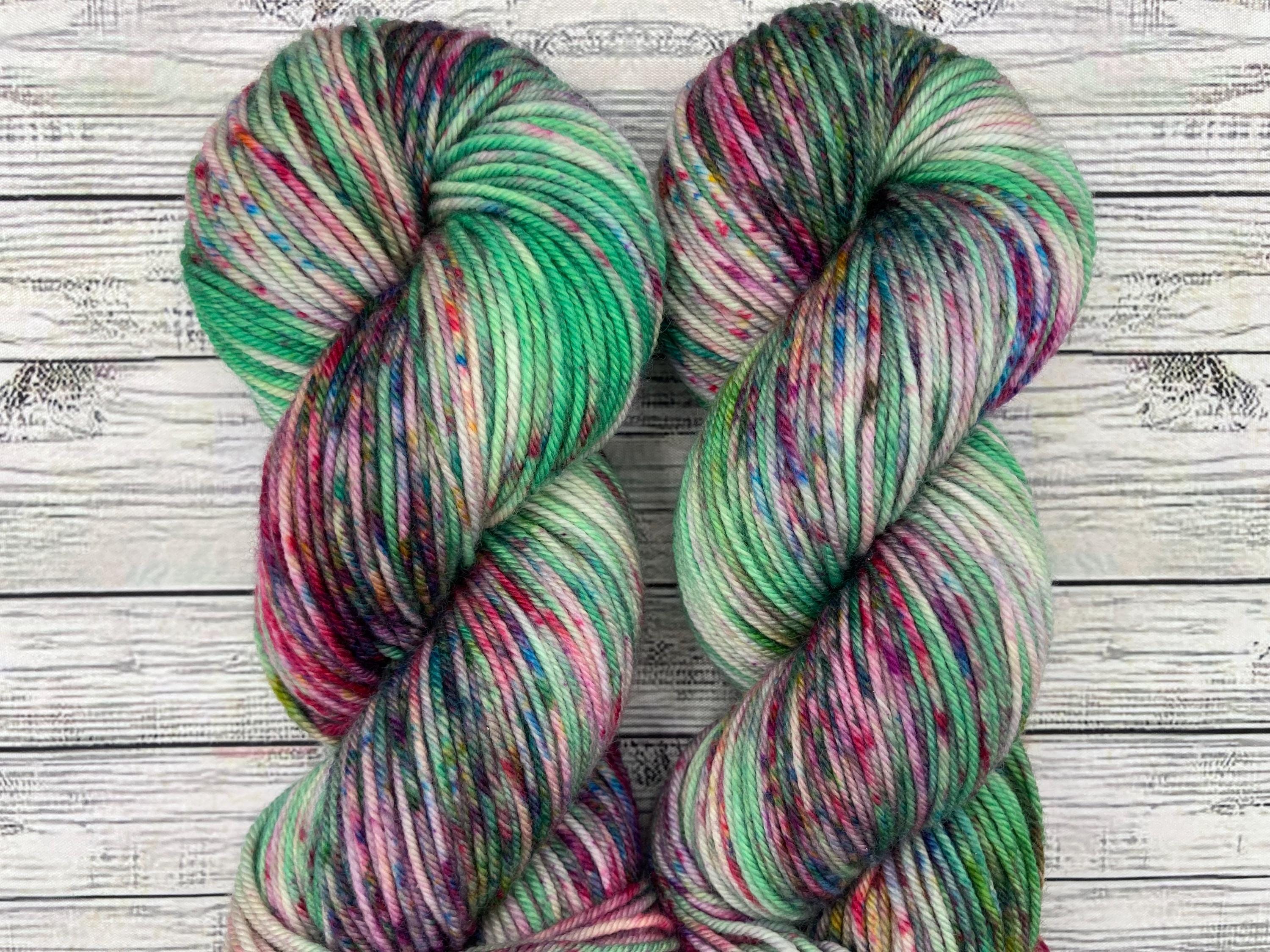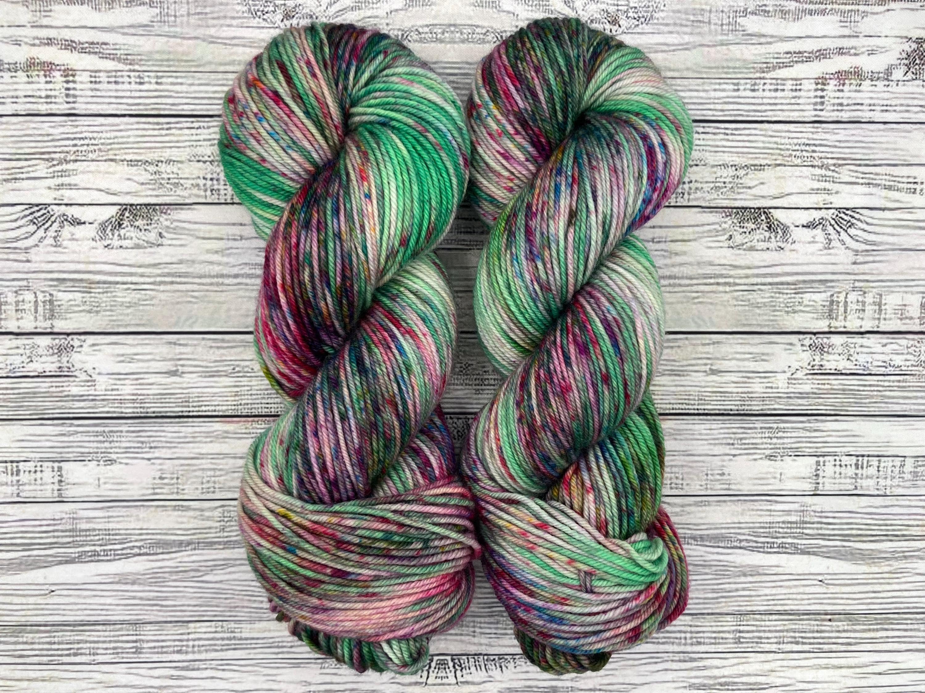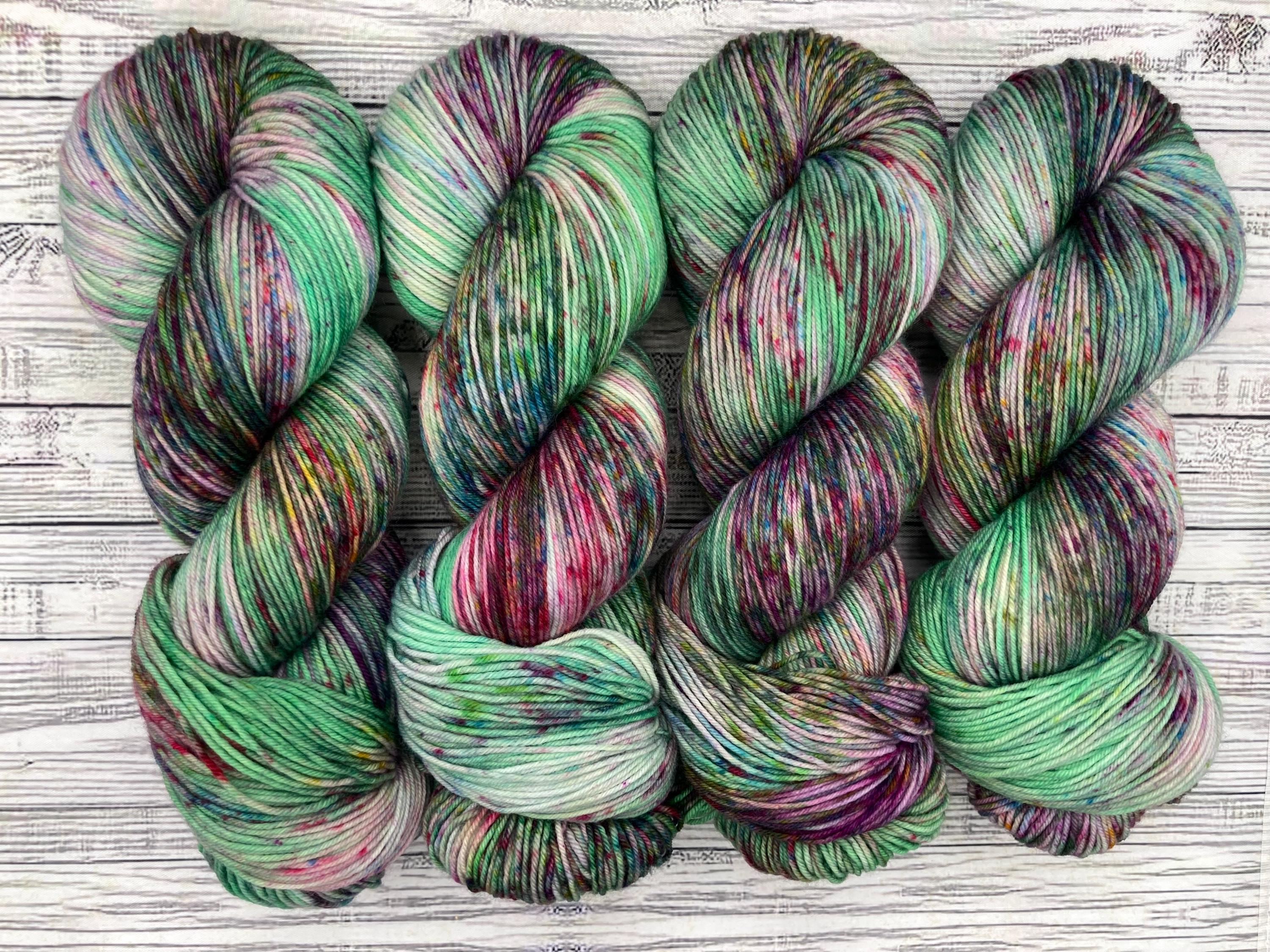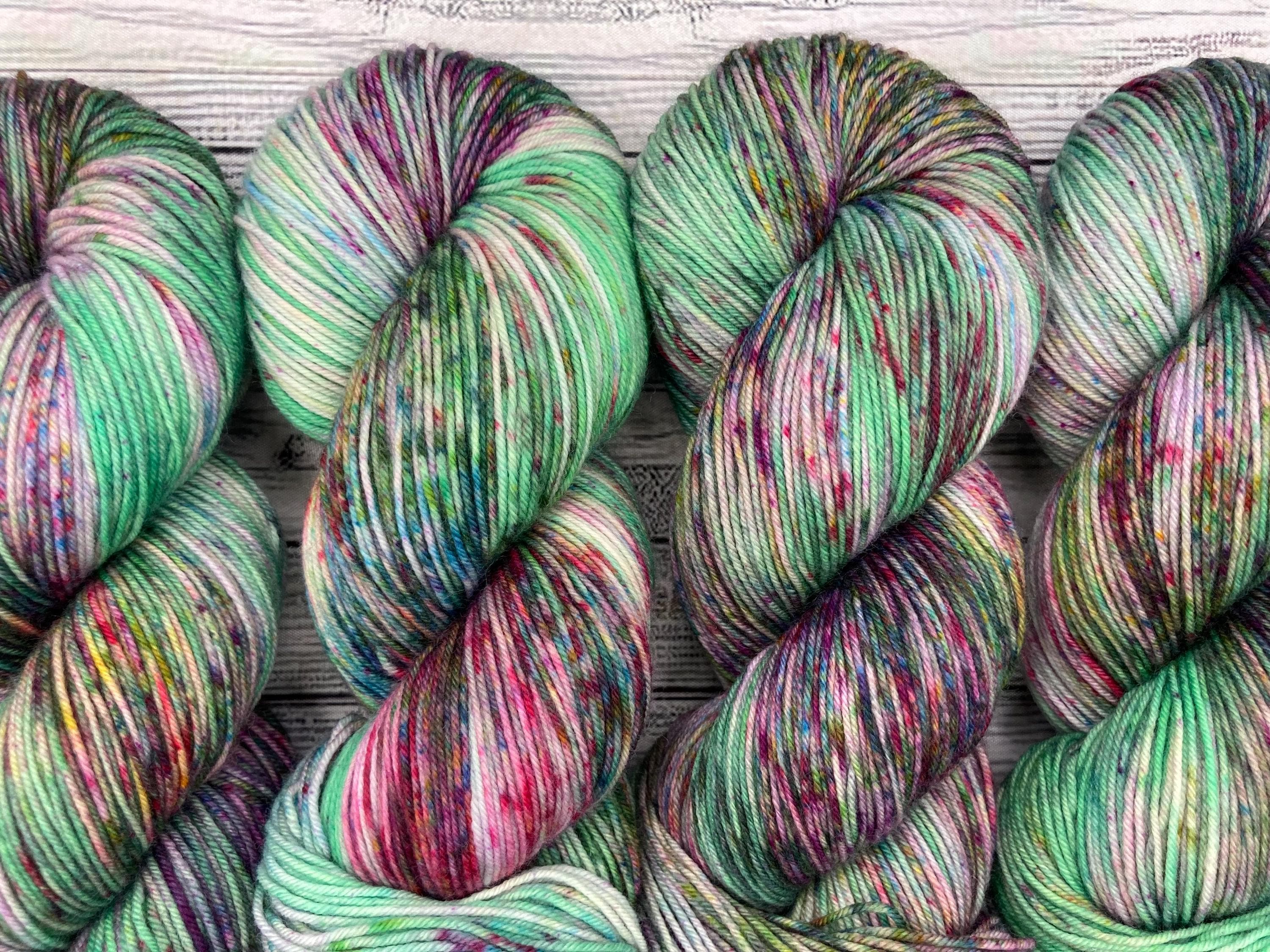 One of a Kind Batch - Yarn is Green with Magenta and multicoloredspeckles throughout